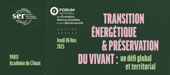 Le Syndicat des énergies renouvelables organise le jeudi 6 novembre 2025, la troisième édition du Forum national des énergies renouvelables et de la biodiversité, à l’Académie du Climat (Paris). Son thème : « Transition énergétique et préservation du vivant : un défi global et territorial » !