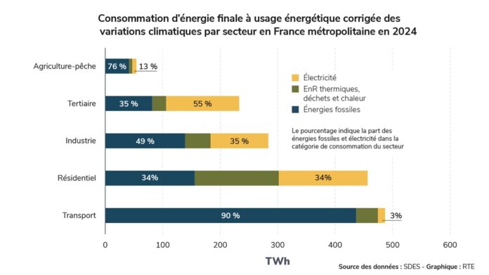 Le Bilan électrique français pour l’année 2025 met en évidence des constats inédits. En 2025, la consommation électrique est demeurée stable, et reste près de 6% inférieure à son niveau d’avant-crise. La production totale d’électricité en France a légèrement crû en 2025 (547,5 TWh) mais la production bas-carbone a atteint un maximum historique de 521,1 TWh et la production thermique fossile a atteint son plus bas niveau depuis 75 ans. La part d’électricité bas-carbone dans le mix français se maintient donc à plus de 95 %. Le contenu en émissions de la production d’électricité française a atteint un minimum historique (10,9 MtCO2eq) et est l’un des plus bas d’Europe.
