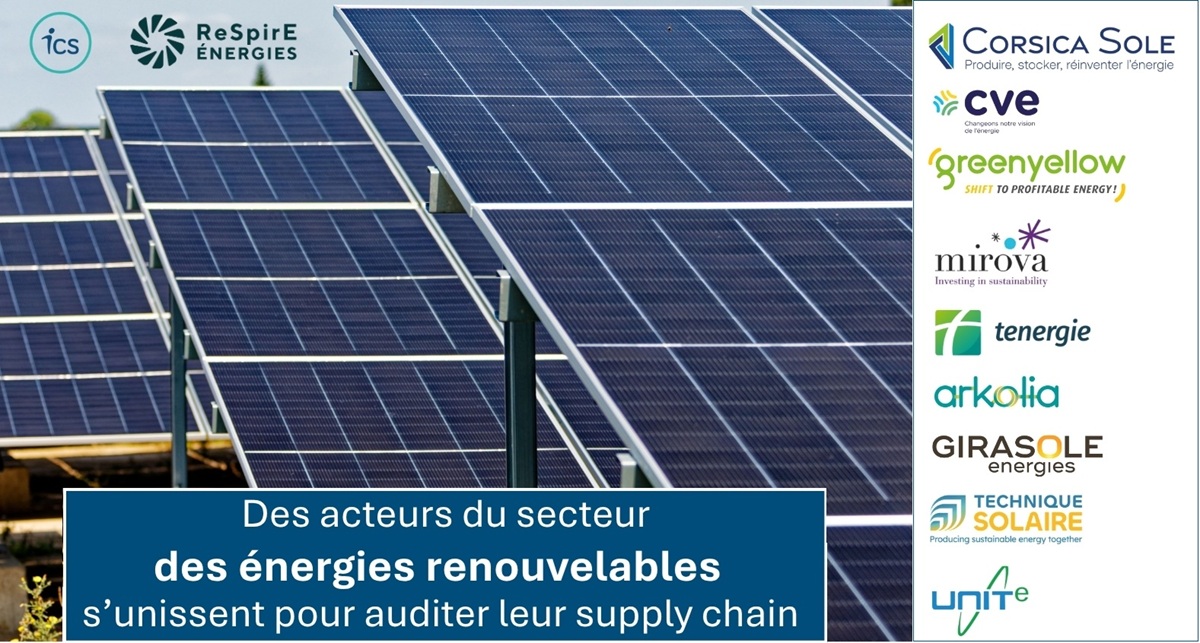 Le projet a été initié en 2024 avec 5 acteurs français des énergies renouvelables, Corsica sole, CVE, GreenYellow, Mirova et Tenergie, en collaboration avec l’ICS, une initiative qui fédère près d’une centaine de marques françaises et internationales de la grande distribution. L’objectif du caractère collectif de la démarche est de renforcer l’acceptabilité des contrôles auprès des fournisseurs en évitant leur duplication, et d’évaluer les risques potentiels ou réels dans les usines grâce à un référentiel d’audit international reconnu.