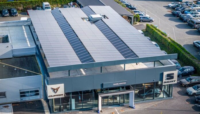 Premier projet né de ce partenariat, le toit de la nouvelle concession Cupra-SEAT à Saint-Malo, appartenant aux concessions du Groupe Daniel Mouton, est désormais recouvert sur 642m² par 321 panneaux solaires d’une puissance totale de 140 kWc. Depuis sa mise en service, en février 2025 le générateur a produit près de 140MWh, Cette installation permet de réduire les coûts énergétiques tout en économisant 6 tonnes de CO2. L’électricité non consommée est revendue et réinjectée sur le réseau public.
