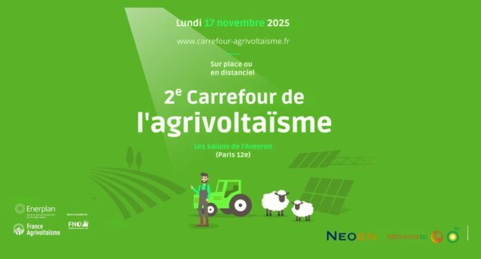 Le 17 novembre prochain dans les salons de l’Aveyron (Paris 12ème), Enerplan organise avec ses partenaires de France Agrivoltaïsme et de la Fédération Nationale Ovine (FNO) avec le soutien de Lightsource bp et Neoen, la deuxième édition du Carrefour de l’agrivoltaïsme. Une journée pour :