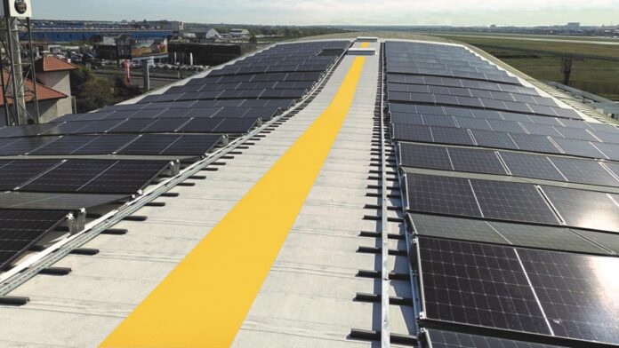 Renolit Alkorplan convient à l’installation de panneaux photovoltaïques, d’accès d’urgence et de lignes de vie.