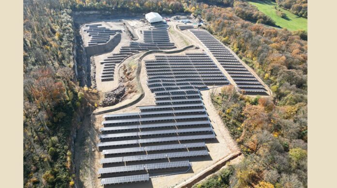 Les travaux, débutés fin février 2025, s’achèveront fin novembre. Ils ont consisté principalement à la préparation du terrain, à l’installation des structures et des modules photovoltaïques, au raccordement et à la sécurisation du site. Durant les travaux et la durée de vie du parc, diverses mesures en faveur de la biodiversité et de l’environnement sont mises en place : suivis écologiques en phase chantier et en phase d’exploitation assurés par Envol Environnement, mise en place d’un système d’enregistrement en continu de la turbidité des eaux de la source du Crible, nettoyage des panneaux effectué exclusivement à l’eau de récupération.