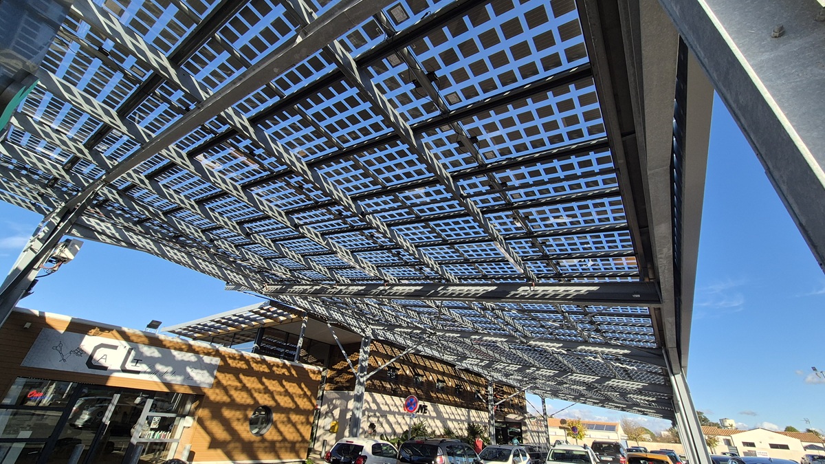 L’installation, pilotée par François Guérin (Picoty Solaire), compte 432 modules biverre Excellent GG 170M32 Brilliant qui apportent 50% de transparence. Les modules ont été posés sur une structure RC3 de la société Dome solar. La superficie, d’environ 765m², permet de mettre à l’abri 22 voitures sur le parking de ce centre commercial du sud-ouest de la France. Cette mise en valeur tant technique qu’esthétique apporte du confort aux visiteurs tout en assurant un résultat unique.