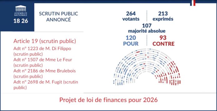 📊 Résultat du scrutin public : 264 votants – 213 exprimés – Majorité absolue : 107 – 120 POUR la suppression – 93 CONTRE