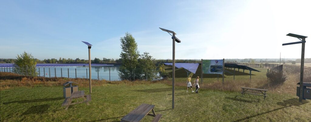 Le projet est implanté sur le site d’une ancienne carrière alluvionnaire incluant des terrains remblayés et un plan d’eau. Le parc solaire est ainsi composé de deux types d’installations photovoltaïques sur le même site, l’une flottante et l’autre au sol. Équipé de 23 950 modules, le parc produira annuellement environ 19,7 GWh, soit la consommation électrique (chauffage et eau chaude sanitaire inclus) d’environ 4 173 foyers. Cela évitera tous les ans le rejet d’environ 228 tonnes équivalent CO2. La mise en service de la centrale solaire est prévue en septembre 2026.