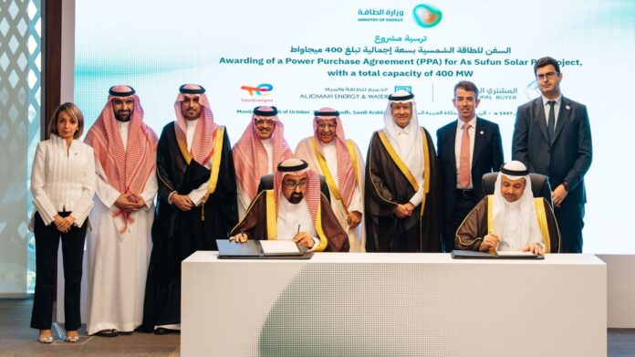 Le consortium formé par TotalEnergies et la société saoudienne Aljomaih Energy & Water Company (AEW) vient de se voir attribuer la construction et l’exploitation d’une centrale solaire de 400 mégawatts (MW) à As Sufun, dans la région de Hail, en Arabie saoudite. Ce contrat, remporté à l’issue d’un appel d’offres conduit par la Saudi Power Procurement Company (SPPC), s’inscrit dans la sixième phase du Programme national pour les énergies renouvelables (NREP) du Royaume.